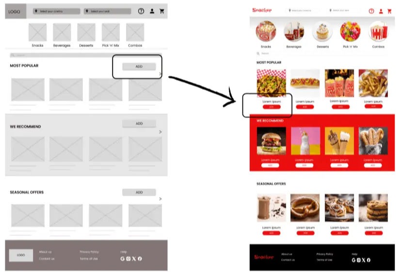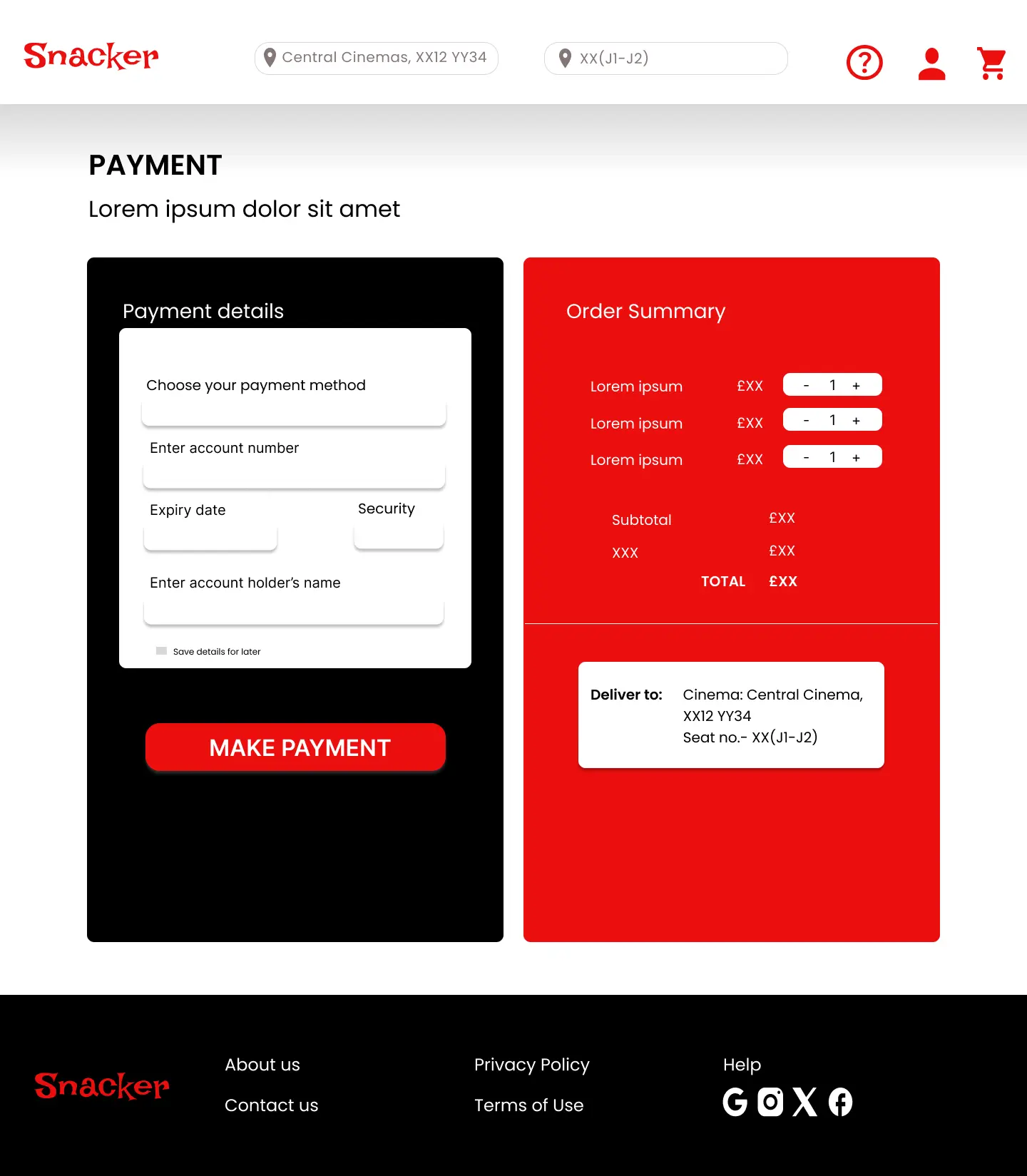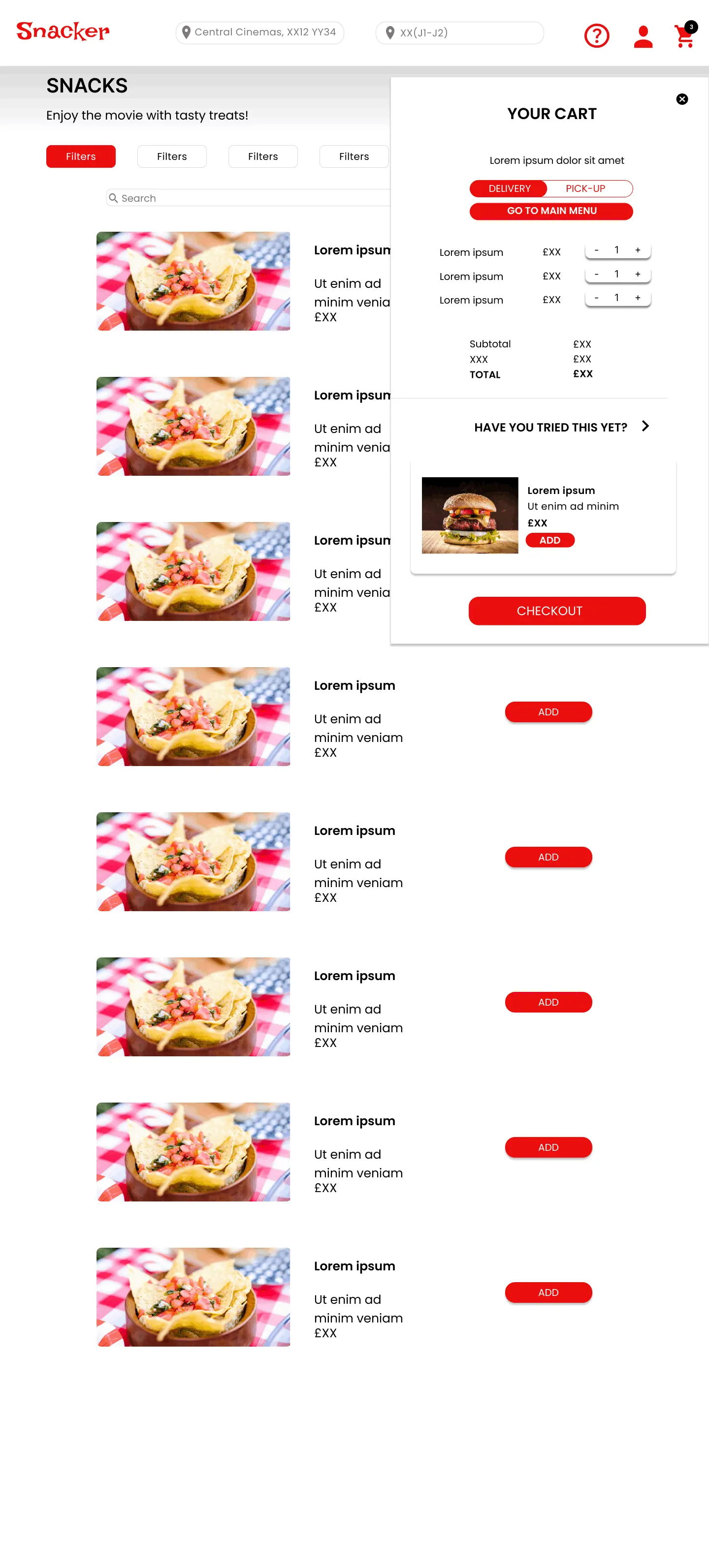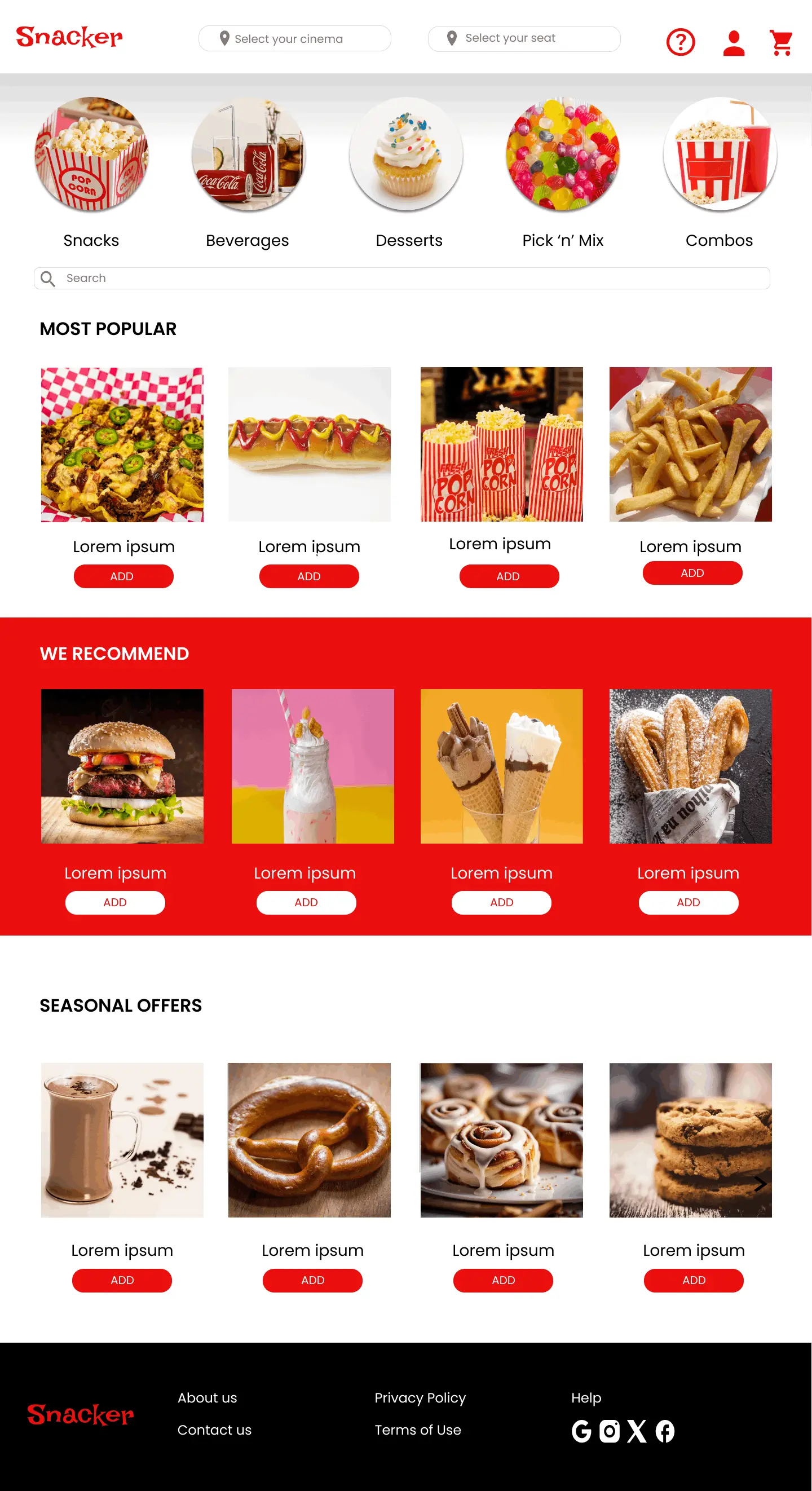 Snacker is a responsive snack-ordering website for moviegoers who don’t like to wait in queues to order at the counter.