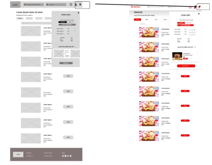 Since Snacker’s customers access the website from various devices, I also developed a mobile screen size variation of the wireframe to make it a fully responsive website.